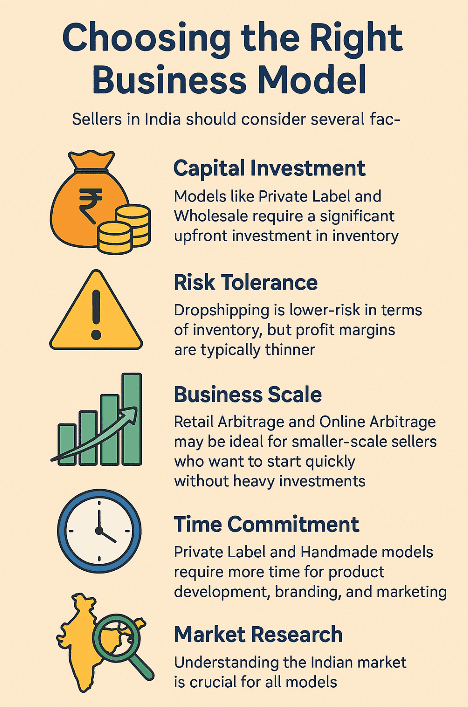 When deciding on the best Amazon business model, sellers in India should consider several factors: